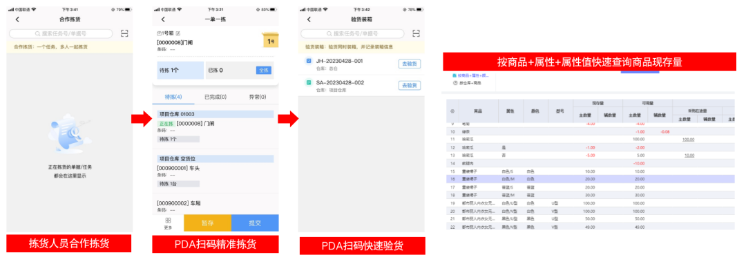 公司仓库数量多、仓储面积大、商品数量多,仓管人员拣货慢,易出错,销售单商品多仓库存放,需要人工拆单,分拣、汇总,沟通成本高工作量大;商品需按属性查看现存量。