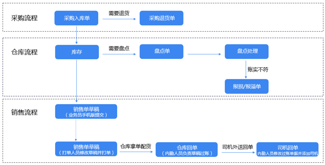 3、从业务员打单到配货、回单确认过账到司机送完货回单交账的完整过程管理。